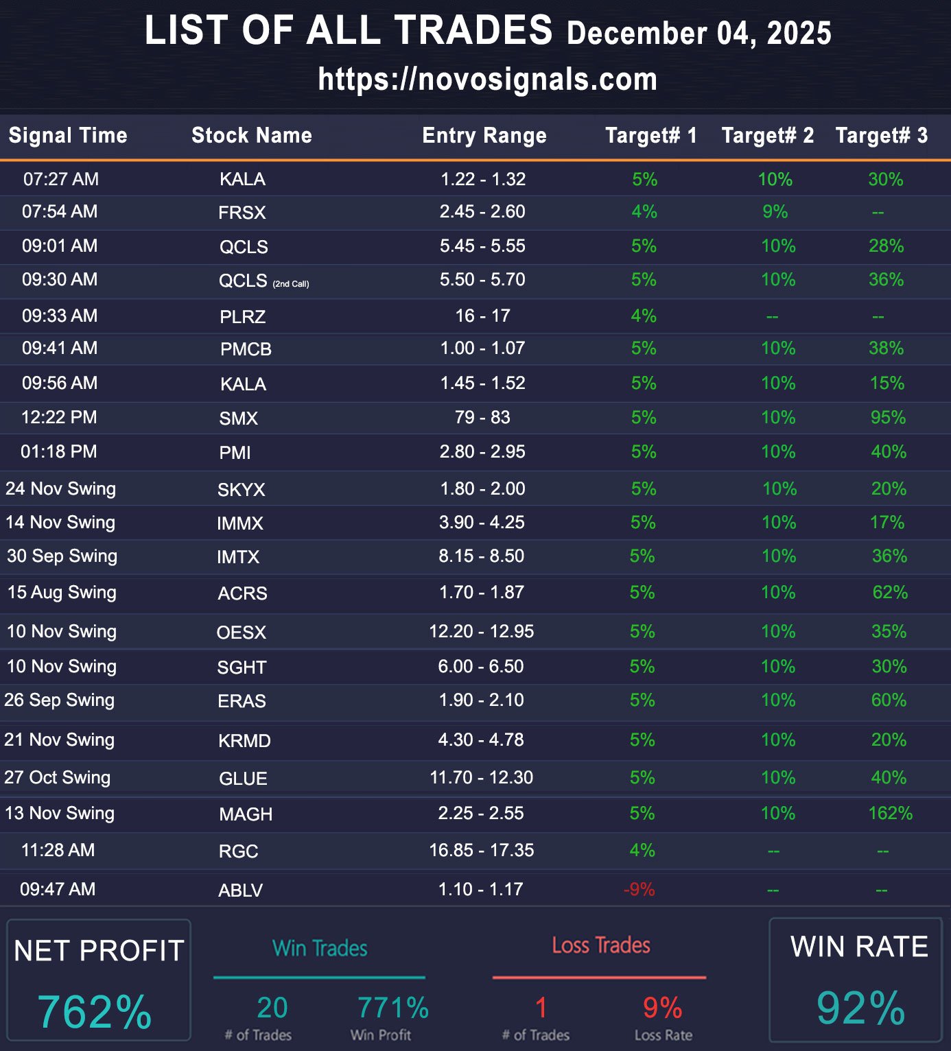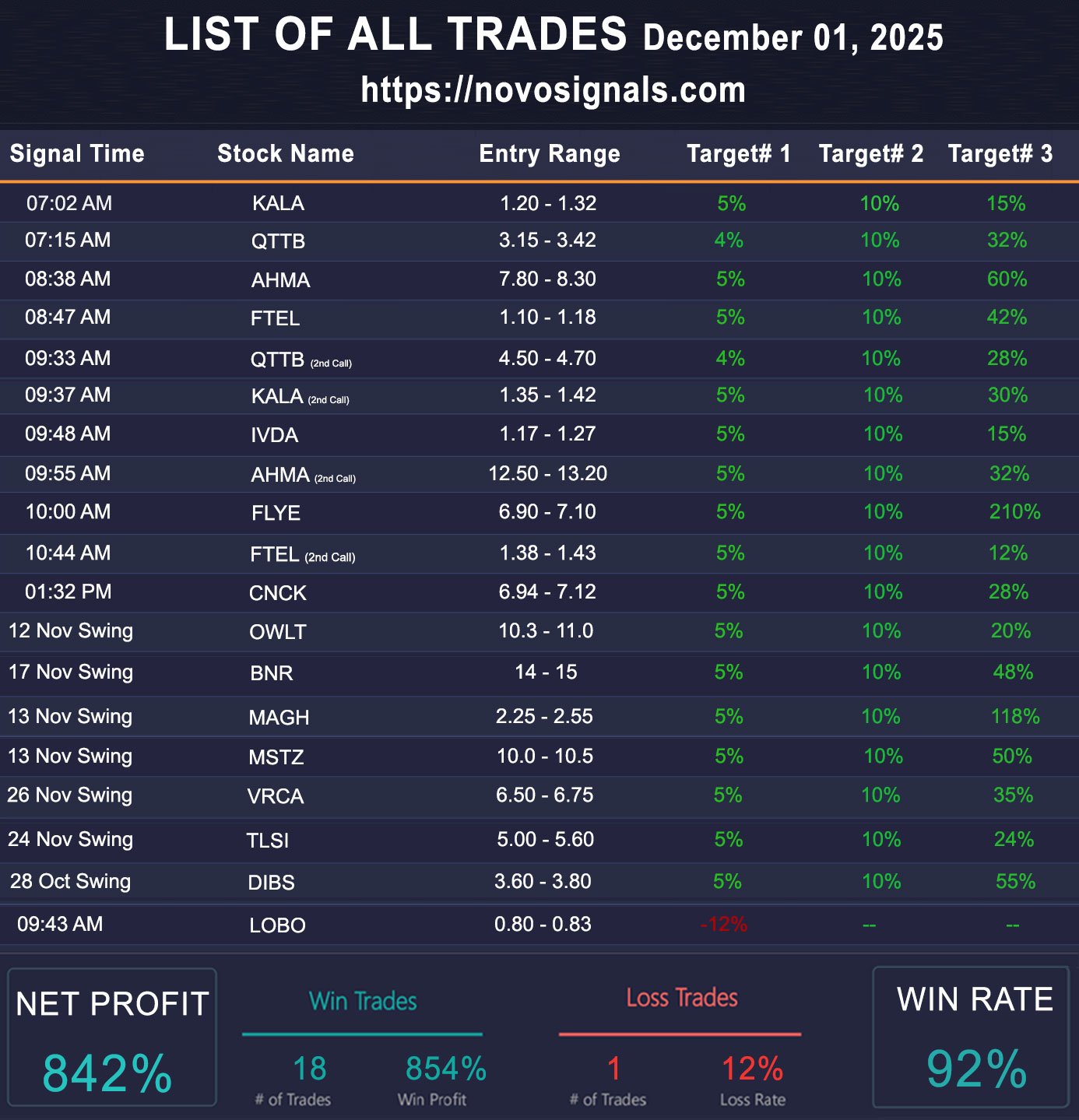 | Dec 01 | 19 | 92% | 854% | 12% |