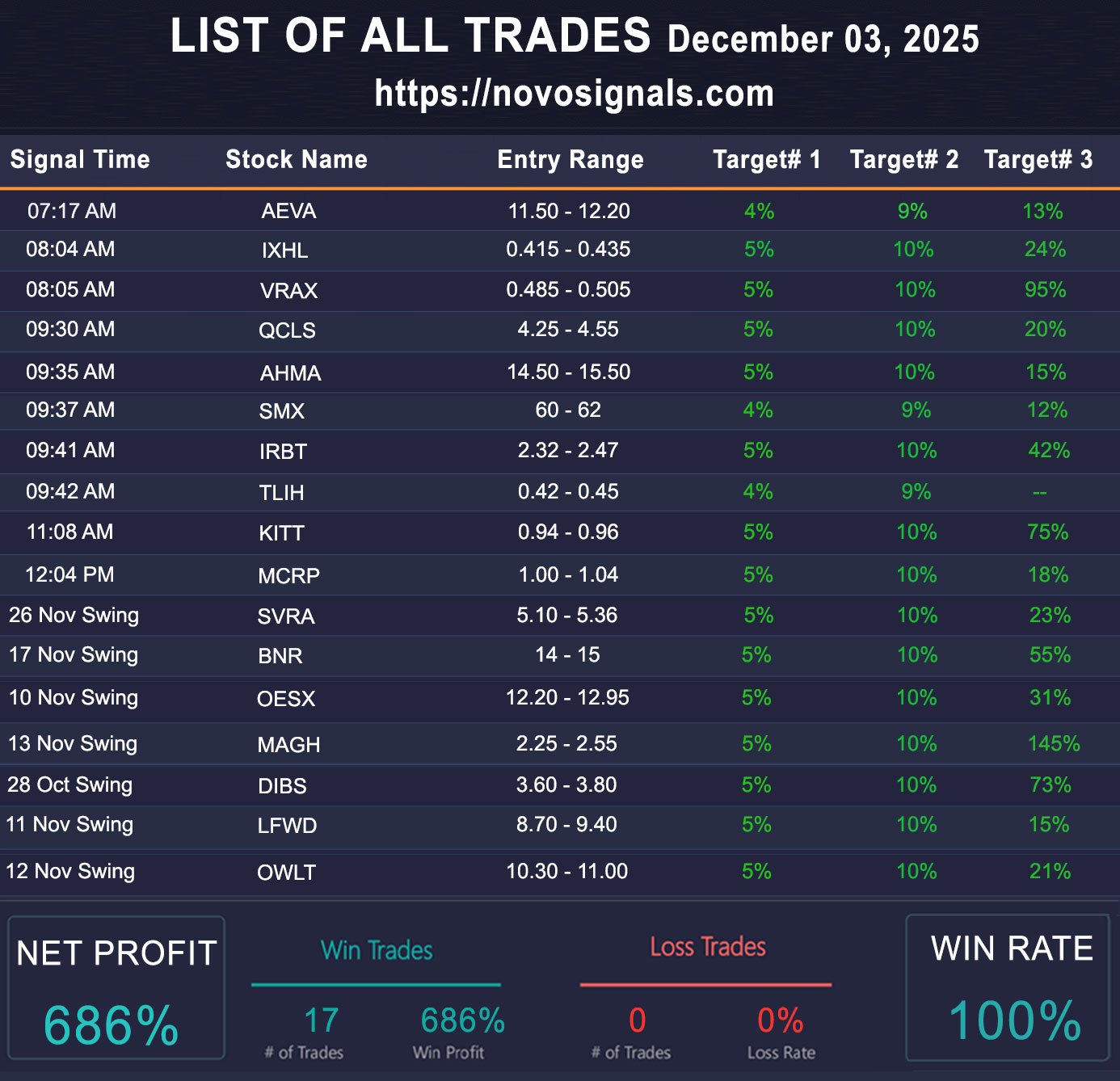 | Dec 03 | 17 | 100% | 686% | 0% |