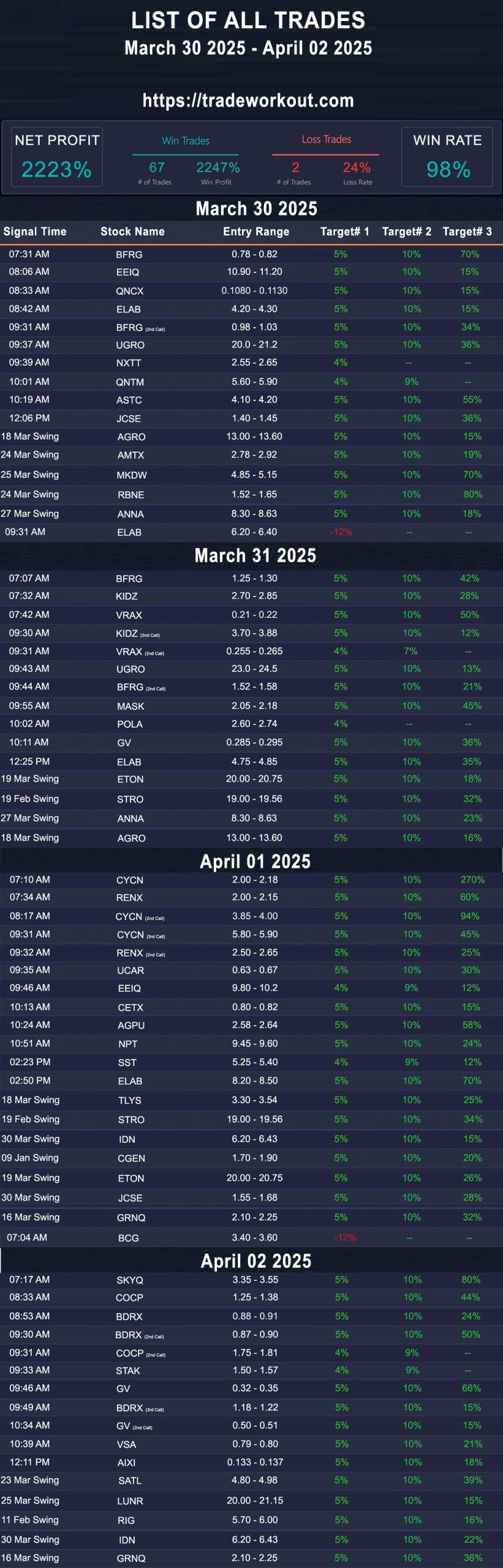 | April 03 – April 06, 2023 | 31 | 83% | 398% | 43% |