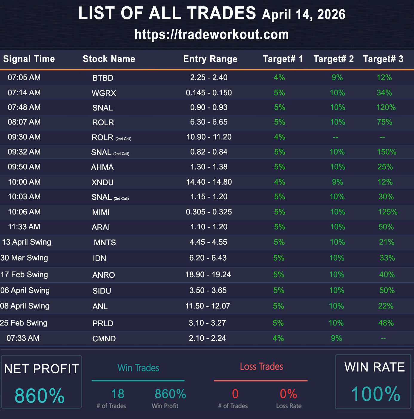 | Apr 14 | 18 | 100% | 860% | 0% |